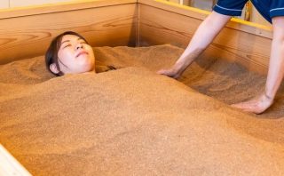 米ぬか100%の酵素風呂に足を入れるとふっかふかで、柔らかく深く入っていくので、北海道の雪の中のような感じです。(もちろん熱いけど)そして米ぬかにダマがない!全裸での入浴なので局部は自分でかけて、その後スタッフの方から米ぬかをかけていただきます。かけ方でも満足感を考えてくれます。