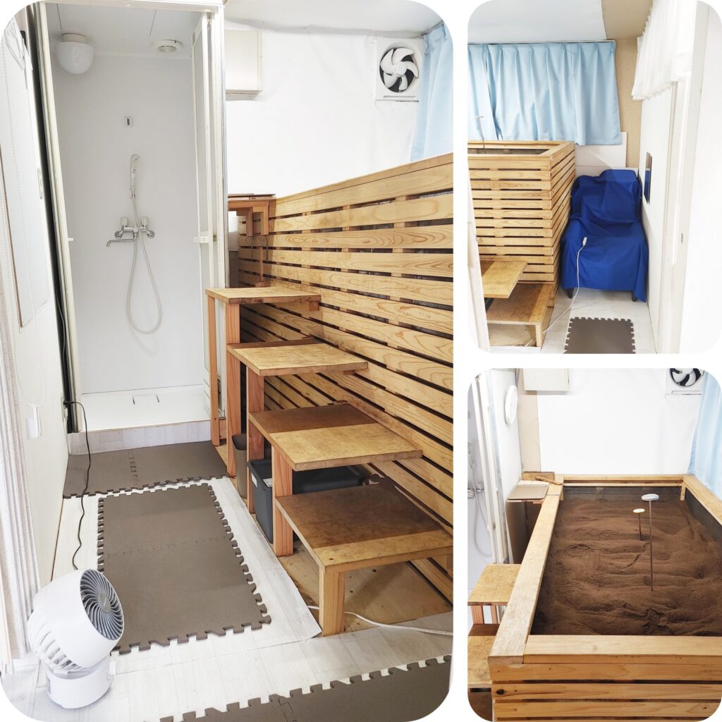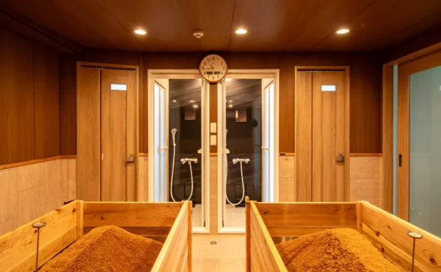 お部屋に酵素風呂(1人用)、シャワー、ソファが有りますので他の人の目を気にすることなくご利用頂けます。